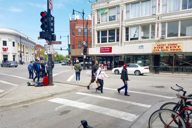 Removing the right turn or “slip lane” used by car drivers who head north on Damen Avenue to turn onto Milwaukee Avenue at the southwest corner of the intersection was also suggested at the meeting in May. The removal of the under-used car turn lane would allow more room for pedestrians.